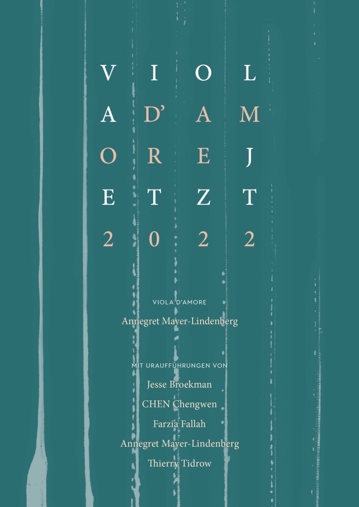 Im Jahr 2022 fand eine Fortsetzung des Projektes Viola d’amore JETZT statt. In Zusammenarbeit mit den Komponist*innen Jesse Broekman, Chengwen Chen, Farzia Fallah und Thierry Tidrow entstanden weitere Werke für Viola d’amore. Auch habe ich 2022 selbst ein Stück für Viola d’amore und Zuspiel komponiert. Diese fünf Werke waren in fünf Konzerten in Köln, Bremen, Leipzig, Hamburg und Freiburg zu hören.